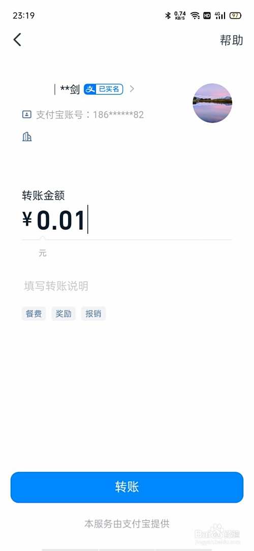 填写 金额,点击 转账;