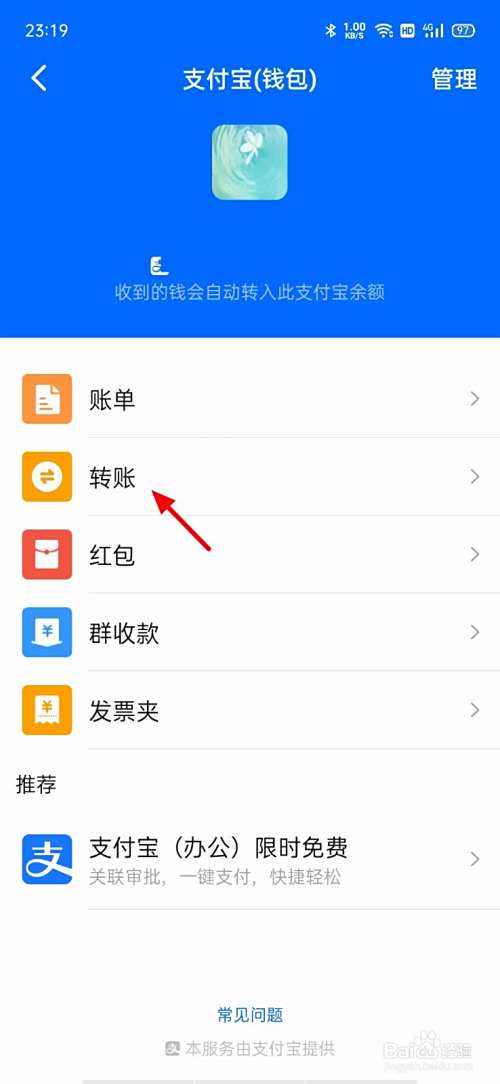 在钱包页面,点击 转账;