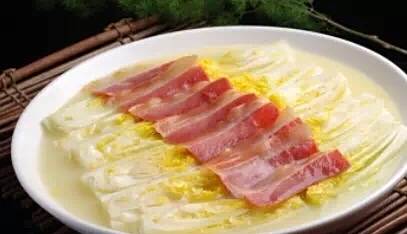 3、将锅内放少许油,加入高汤、白菜、料酒、精盐、白糖;再把火腿片、玉兰片沿锅边下锅烧约两分钟,加入味精,先把白菜心盛于盘内,锅再上火,用水淀粉勾芡,浇在白菜上即成。