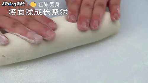 10之后将面揉成长条状。