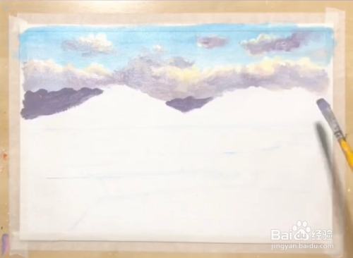 首先,我们准备所需要的一些材料用美纹纸胶带,把纸张固定在桌面上。
