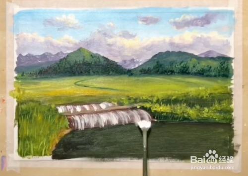 接下来我们需要做到的,就是利用一些颜料比较细致的绘画,出流水的部分和草地的部分。