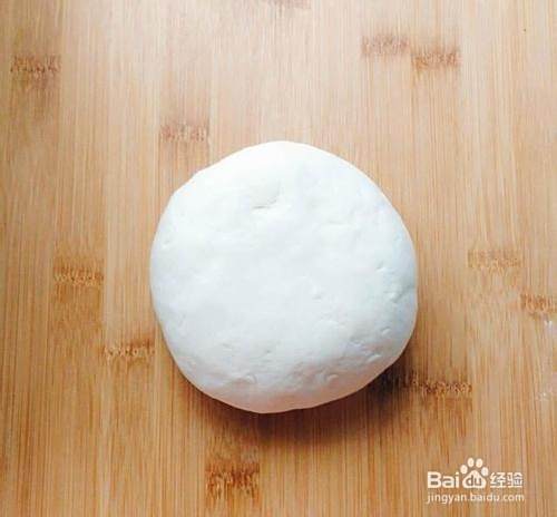 面粉倒入盆中,酵母粉温水化开,将酵母水倒入面粉中揉成外面光滑的面团。