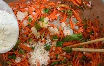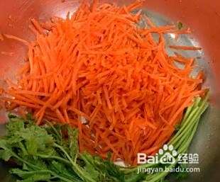 将事先准备好的新鲜胡萝卜切丝,香菜洗净备用;