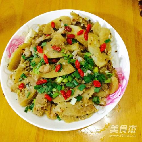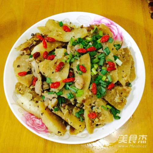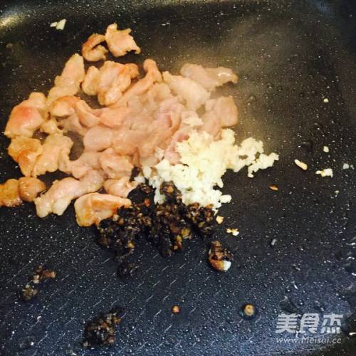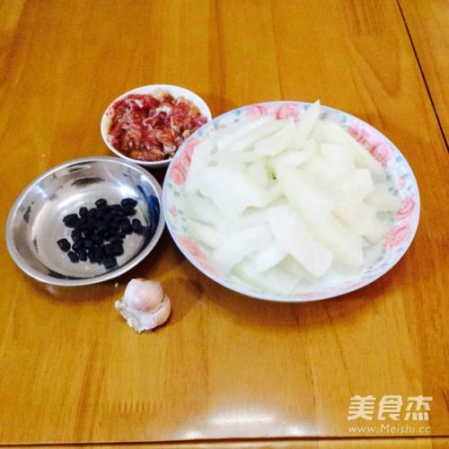 6猪肉切好,豆豉洗净,柚皮抓干水分,蒜子剁成蒜末,香葱切葱花,杞子用温开水洗净