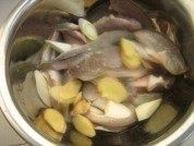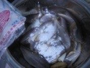 把洗干净的黄花鱼放入料酒,盐,姜片,葱段,生抽,姜片,腌制15分钟左右。