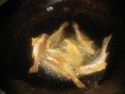 锅里放油,(油的量,漫过鱼的身体即可),8成热后,把鱼放进去,炸至两面金黄。
