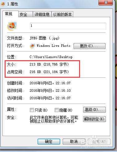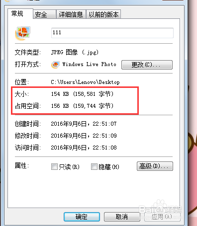最后我们在来看图片详细信息,像素不变,所占的内存变小啦。
