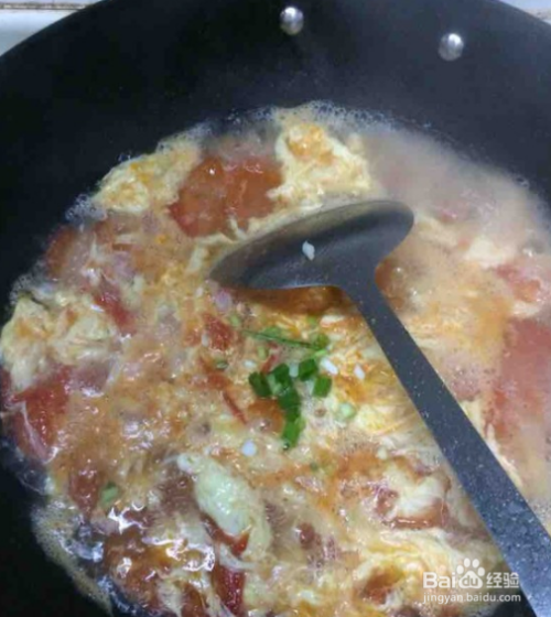 待蛋花汤烧开,撒入葱花就可以出锅啦。