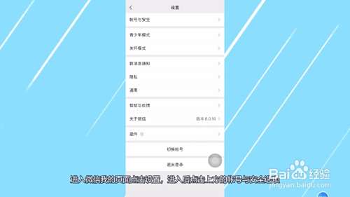 进入微信我的页面点击设置,进入后点击上方的帐号与安全选项。