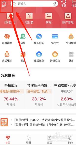 进入主页面,点击左上方的〔登录〕,如图所示:
