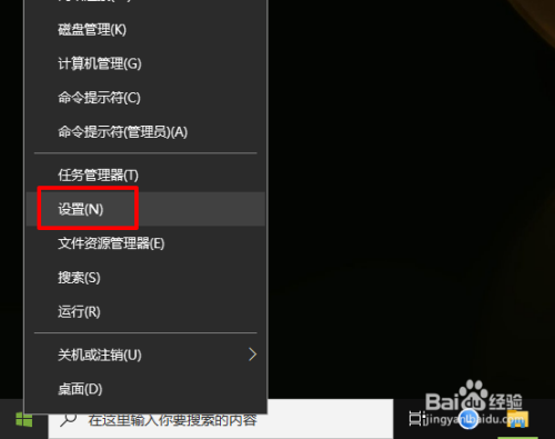 开始按钮右键选择【设置】。