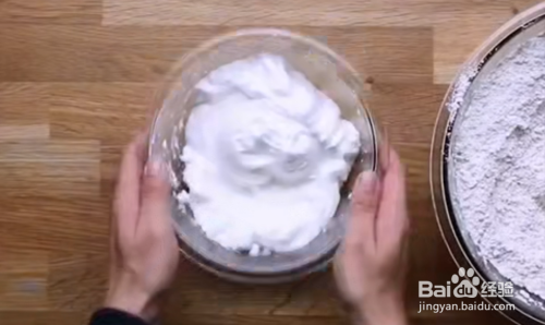 蛋清中加少许白醋或者柠檬汁,然后用高速打发器打发,打发至出现螺旋状的纹路为止。