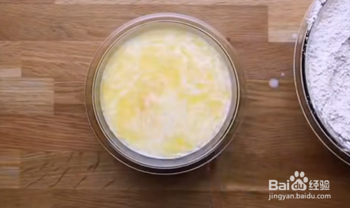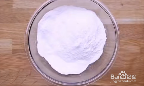 碗中加入面粉,泡打粉搅拌均匀备用。