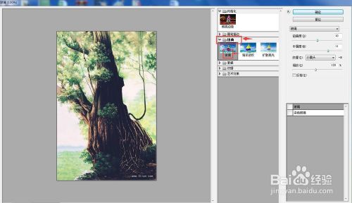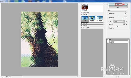 设置参数,将扭曲度设为10,平滑度设为11,纹理设置为小镜头,缩放设为120%,按确定;