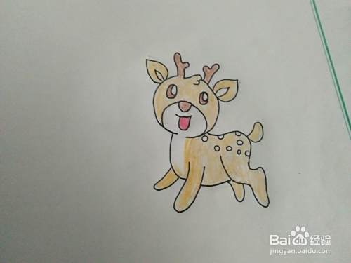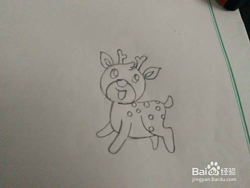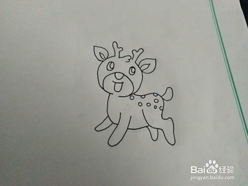把后边的腿也画好后,我们把小鹿的尾巴也画好。
