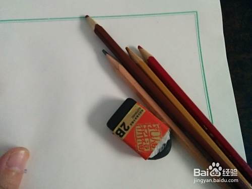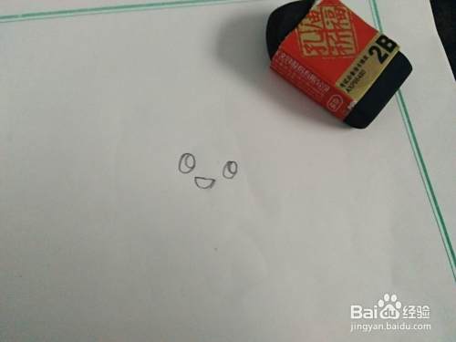 首先准备好纸,铅笔橡皮,一些彩铅备用。先在纸上画上两个大眼睛和一个倒三角的鼻子,如图。