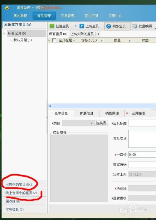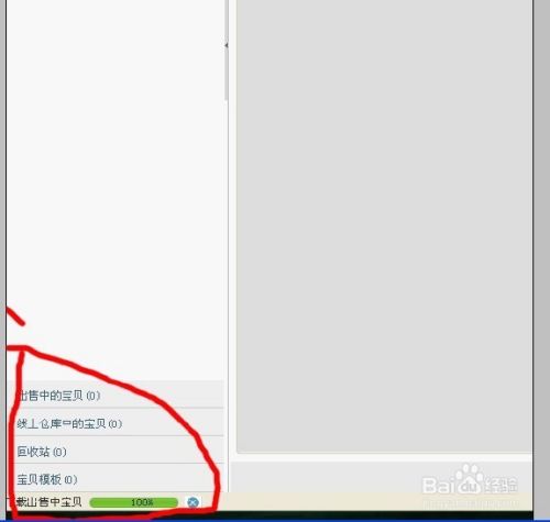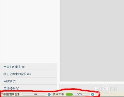 按下图圈住的步骤点击。左下角就会显示正在下载。可以看到左下角出售中的宝贝这些全是为0,