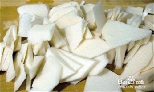 切片,清理干净了以后,我们可以用清水清洗一下,然后在用刀将竹笋切成差不多一样大小的片,这样我们在以后的工序中制作起来会比较方便。