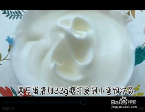 第2步,把两个蛋清加33克糖,打发到小弯钩状态,把蛋清分两次和奶酪糊翻拌均匀,把面糊挤进模具,烤盘加水,水浴烘烤,先低温慢烤,最后提高温度上色即可。