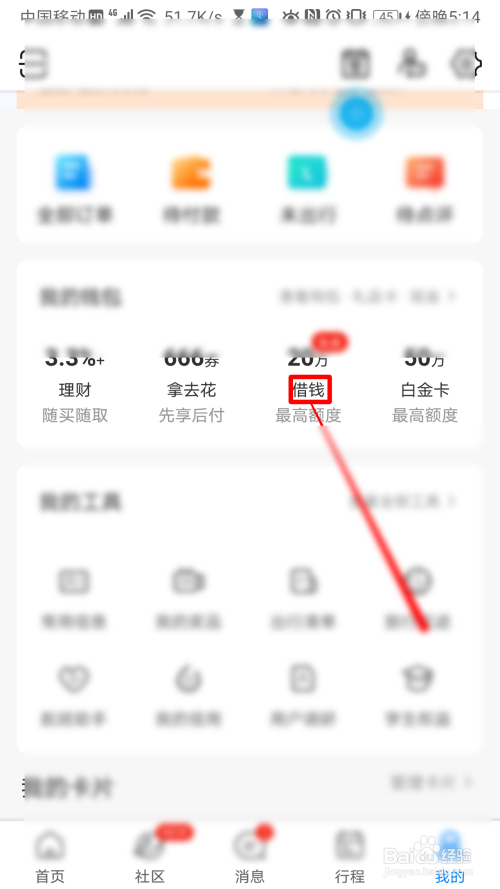使用携程旅行时,有时候需要借钱。那么,如何借钱?接下来就演示操作步骤。