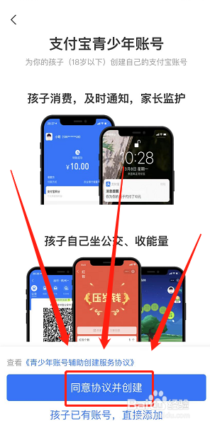 选择点击同意协议并创建,进入后填写青少年信息即可设置成功。