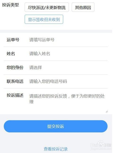 4.输入投诉快递的单号以及投诉的原因,再选择提交
