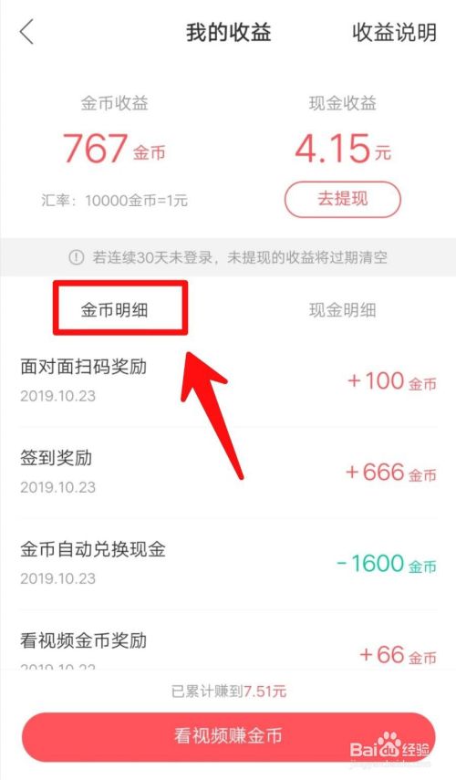 4、金币的获取明细可以来我的收益------金币明细查看。