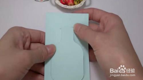 首先在一个蓝色卡纸上画许愿瓶的形状,然后用刀裁剪出来