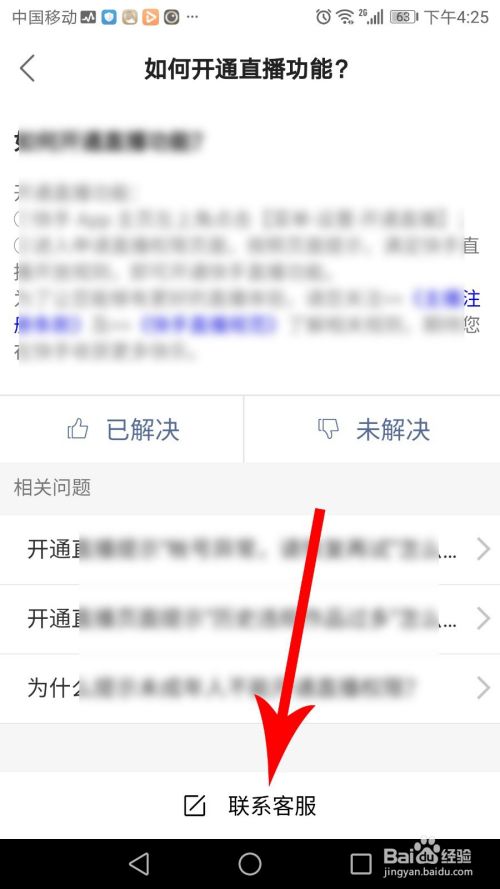 打开“如何开通直播功能?”界面点击界面底部的“联系客服”。