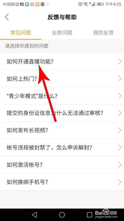 打开反馈与帮助界面点击“如何开通直播功能?”。