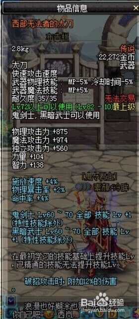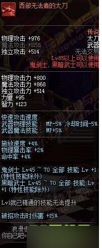 西部无法者太刀是85传说装备,太刀,无法交易,任务武器,没有什么突出特点,外形也不是多美观,在远古深渊地图中可以掉落,也可以做任务获得,需要800个远古材料换取,打卡勒特远古即可。