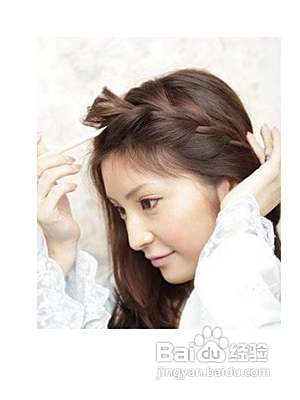 接下来的是关键哦,用发梳在前额发辫处微微抽出些许发丝,这样从正面和侧面就能明显的看出自然蓬松的效果。