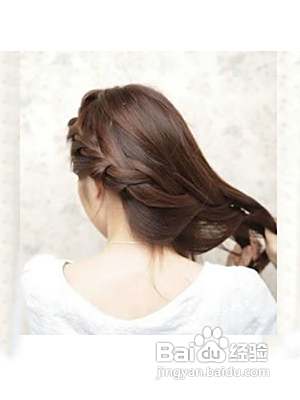 将发辫尾部三分之一处与右侧的的头发编在一起,同样打造松散的发辫效果即可。