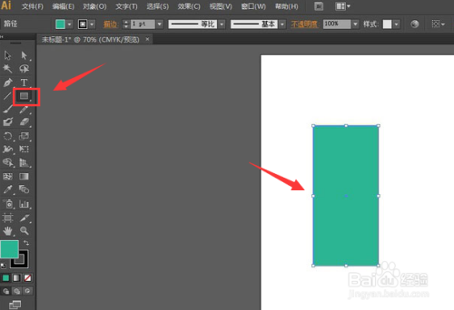 新建画板后,点击矩形工具画一个绿色填充矩形。