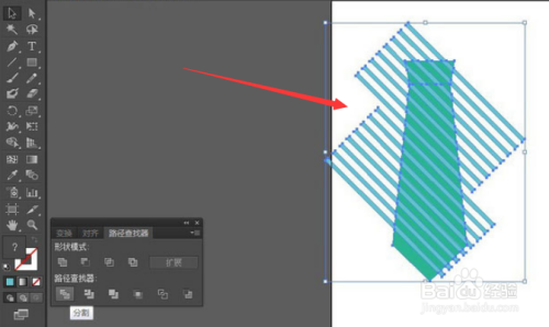 最后选中所有图形,按下键盘的Ctrl+shift+F9打开路径查找器窗口,点击分割按钮并删除多余部分,得到如下图所示图形即可。