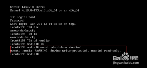 mount /dev/cdrom /media,(注意挂载之后的文件时只读的,需要复制到别的文件夹下才能正常使用)
