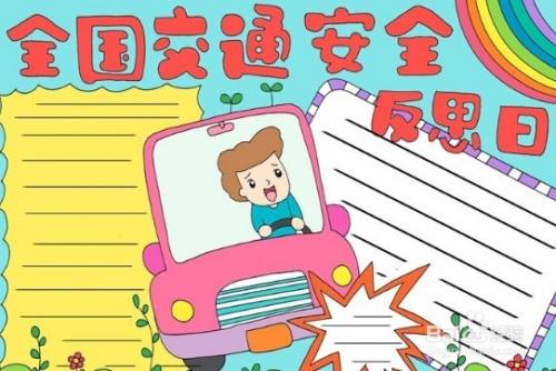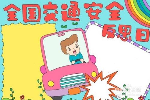 先在上方画上报头,下面画一辆小汽车发生安全事故,底部画上草丛,上面画上花朵植物,然后画出两个小边框,右上角画上彩虹,接下来涂上合适的颜色,最后画上文字栏,简单的手抄报就画好了。