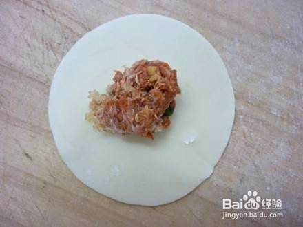 面粉加入开水烫成面团,揉光搓条下剂子,擀成圆皮