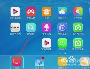 打开电视,智能电视开机都是电视的主界面,这里需要点击“电视”按钮。如下图所示: