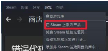 找到左上角的游戏选项,点击打开,并在列出的小选项中找到在steam上激活产品。单击它。