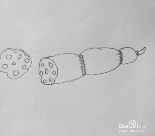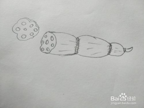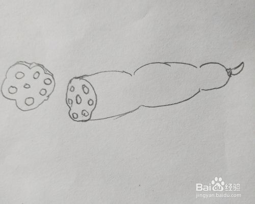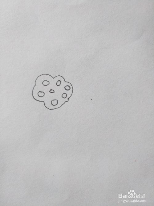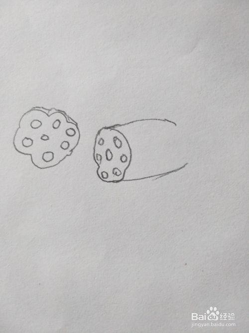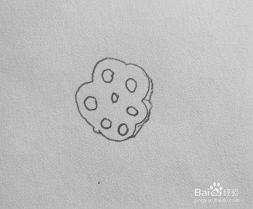首先,画出一片藕片的形状。不规则的,随意一些。