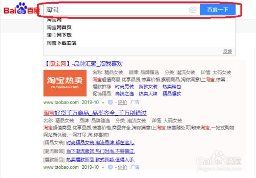 第一步:百度搜索“淘宝”,点击“淘宝”进入官网,如下图所示。