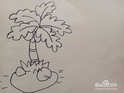 第六步,我们在椰子树附近画上一些草丛和石头做修饰,画面更好看了。椰子树就画完了,很简单吧。