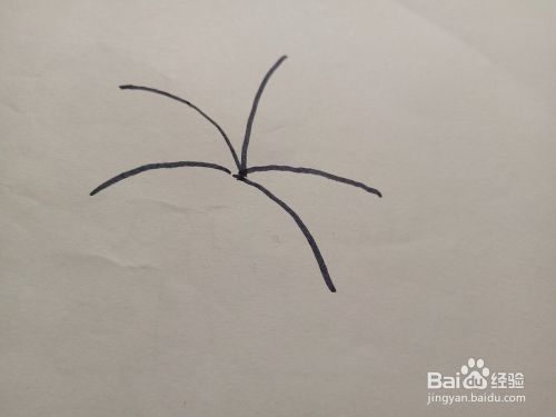 第一步,我们以一个点为中心,画椰子树的叶茎,这叶茎决定了叶子的长向,椰子树椰子应该四周发散,生产繁茂。