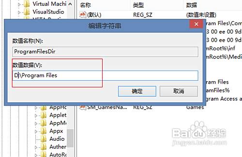 双击“ProgramFilesDir”修改自己想要安装的路径,例如:D:\Program Files