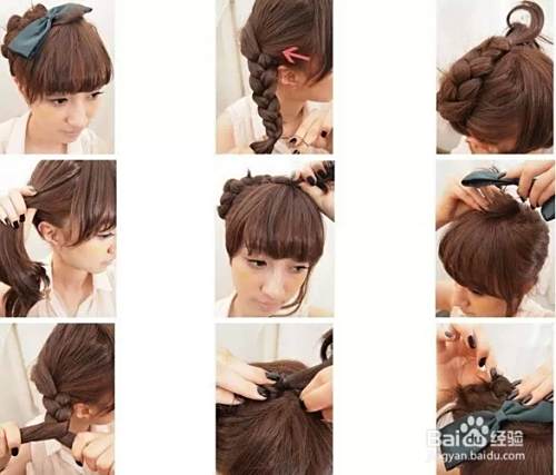 首先两边编辫子,如此这般编啊编~然后做小弯曲固定。这样就OK了。