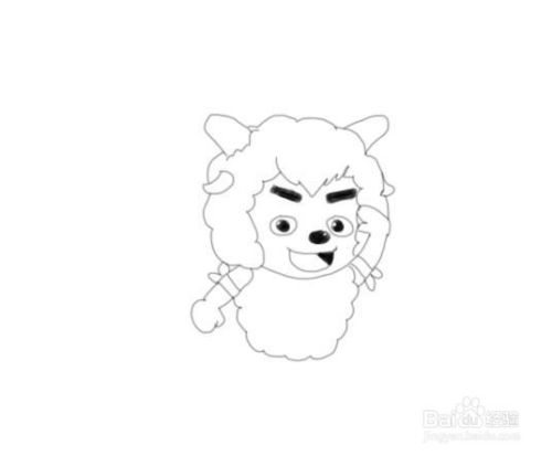 画好沸羊羊的头部之后,我们再画出沸羊羊的两只胳膊及手部,如图所示: