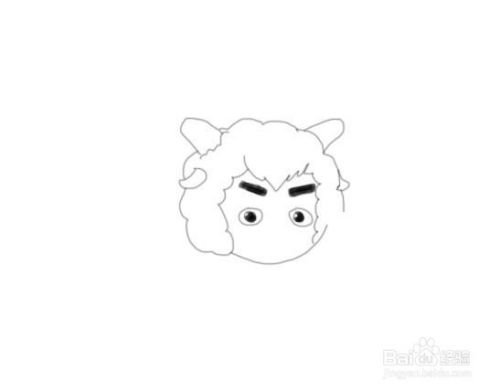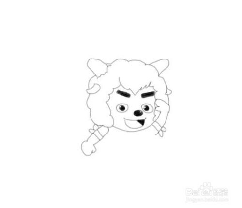 先画出沸羊羊的头发,然后再画出沸羊羊的面部,在头发上面再画出沸羊羊的二两只角及耳朵,如图所示: