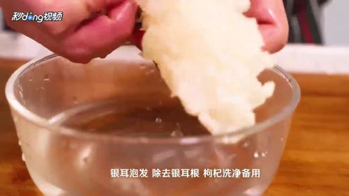 银耳泡发,去除银耳根,枸杞洗净备用。